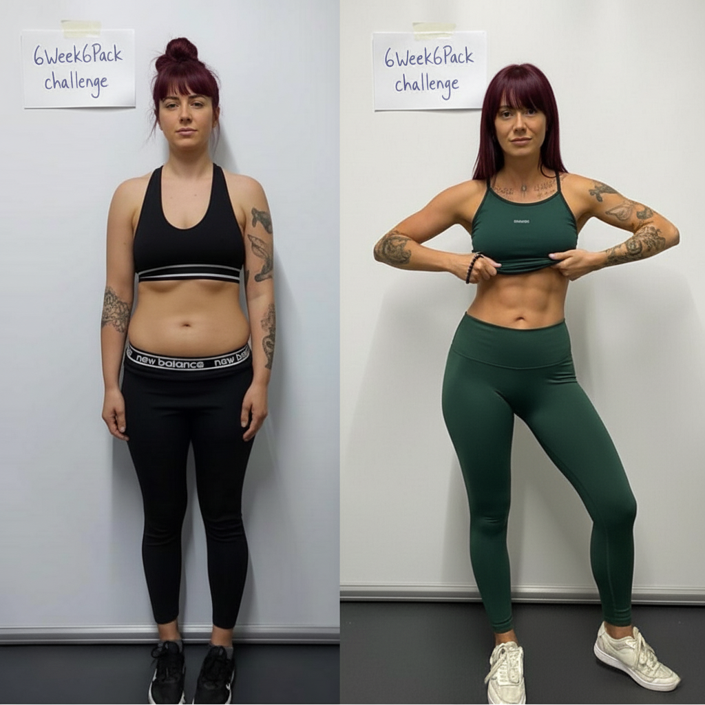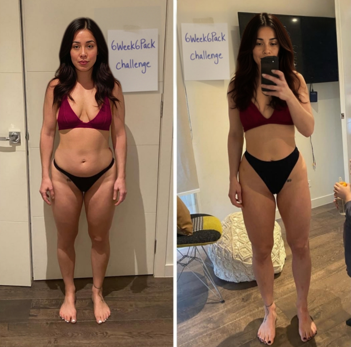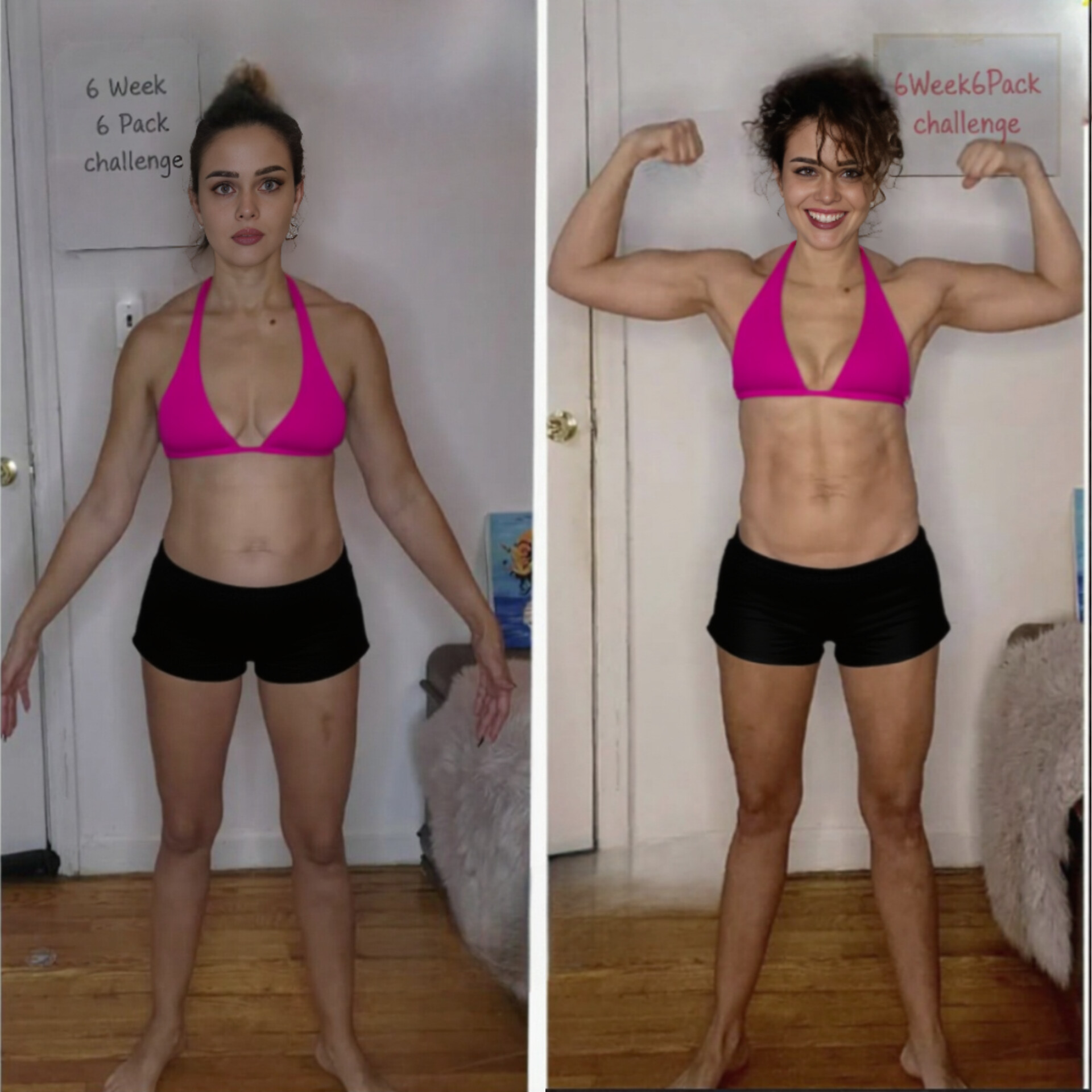 “Flattened, toned, and transformed in 6 weeks… these are real results from participants who followed the 6 weeks 6 pack Challenge.”